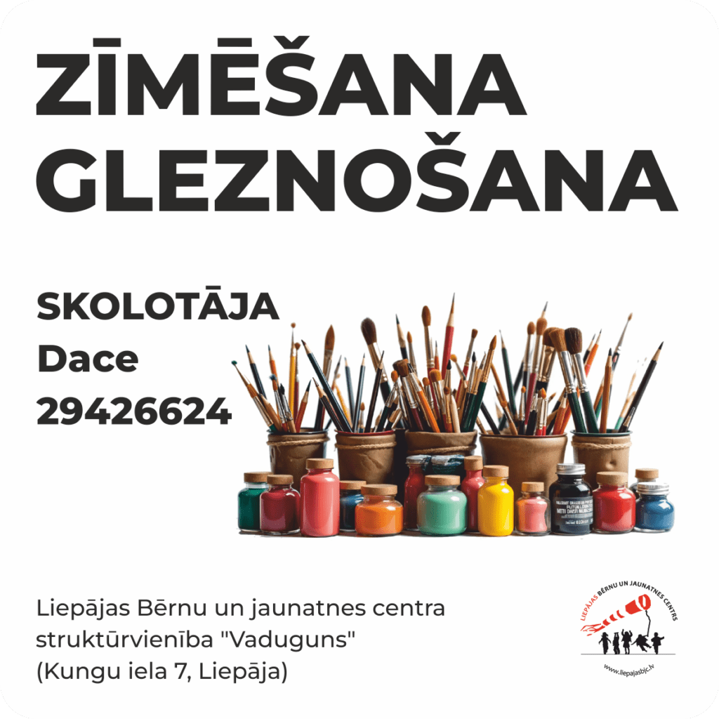 Nodarbībās “Zīmēšana un gleznošana” apgūst pamatus priekšmetu uzbūvē, krāsu mācībā un dažādās glezniecības tehnikās. Praktiskajās nodarbībās pilnveido spēju redzamo pasauli attēlot uz papīra vai audekla un izbauda prieku par radošo procesu.